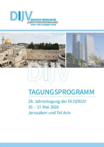 Alle Mitglieder der DIJV, Freunde und Interessenten sind herzlich zur 28. Jahrestagung der Deutsch‑Israelisch/Israelisch‑Deutschen Juristenvereinigung eingeladen, die vom 10. bis 17. Mai 2026 in Jerusalem und Tel Aviv stattfinden wird. Sie erwartet ein anspruchsvolles Tagungsprogramm, das den Blick auf die Herausforderungen richtet, vor denen die Rechtssysteme in Israel und Deutschland in Zeiten tiefgreifender internationaler und nationaler Umbrüche stehen.